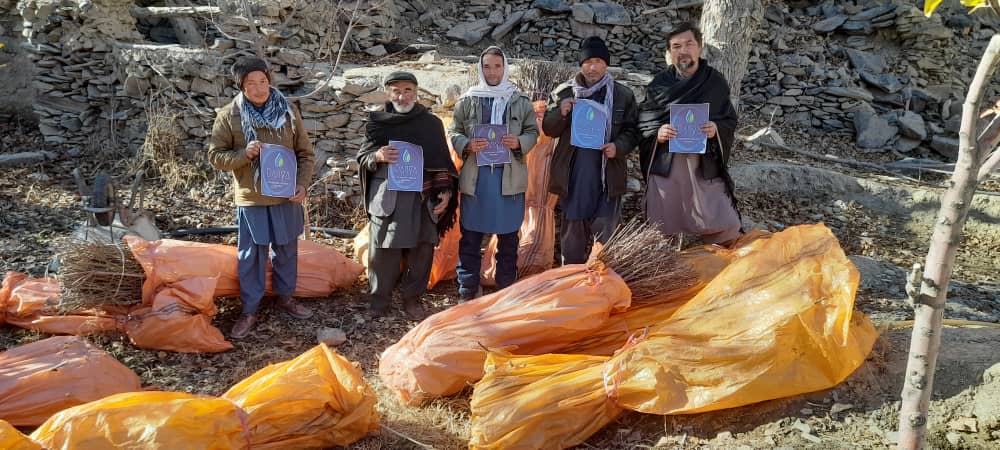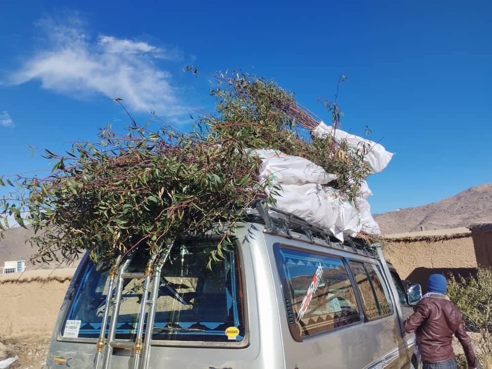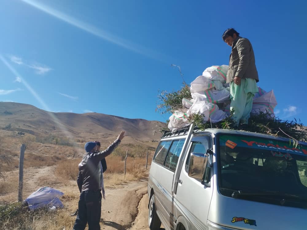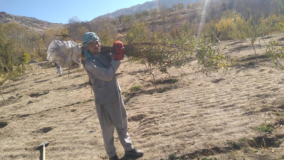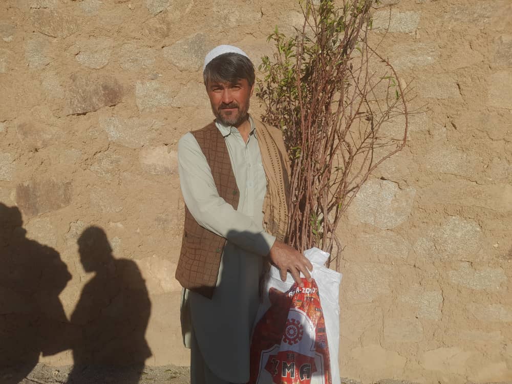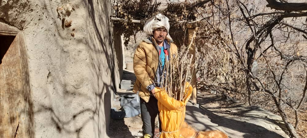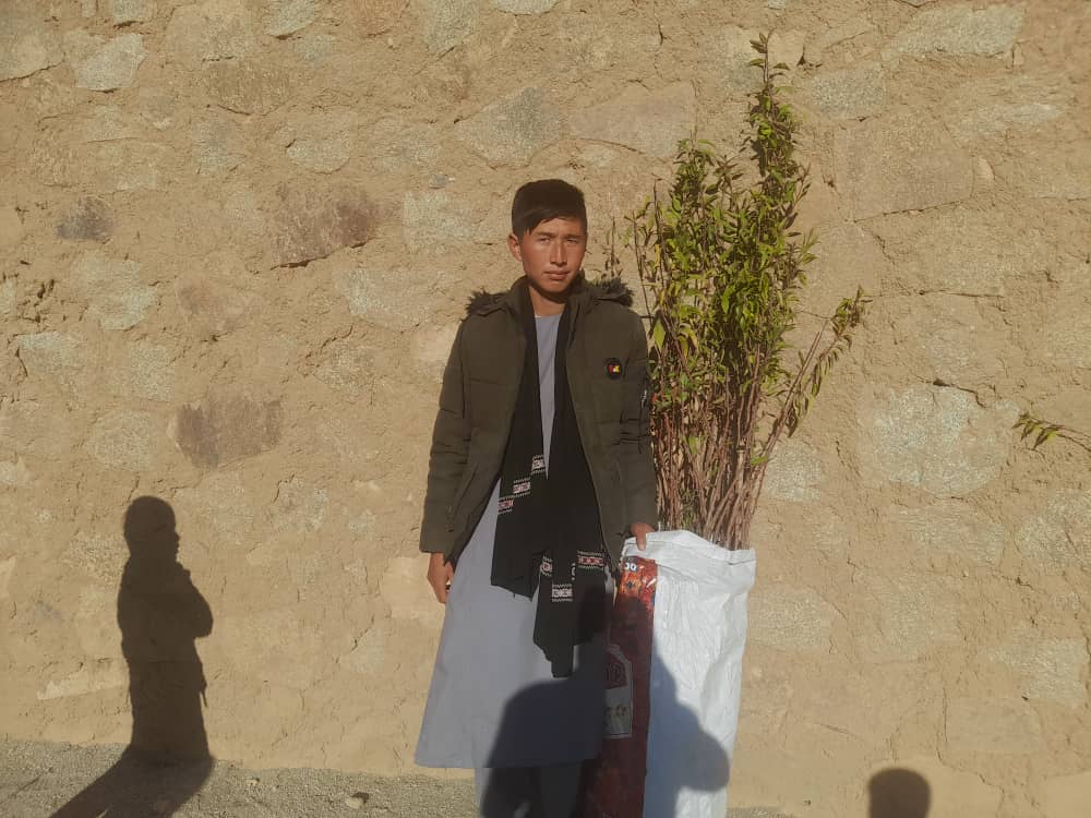 In Sarawood, Mr. Khodabakhsh has a small tree growing business and he sells saplings. In November 2022, we bought 1800 saplings for 50 Afghani each. Then the saplings were distributed to 45 families who live in different villages in Miramor district of Daikundi. Each family received about 40 saplings.