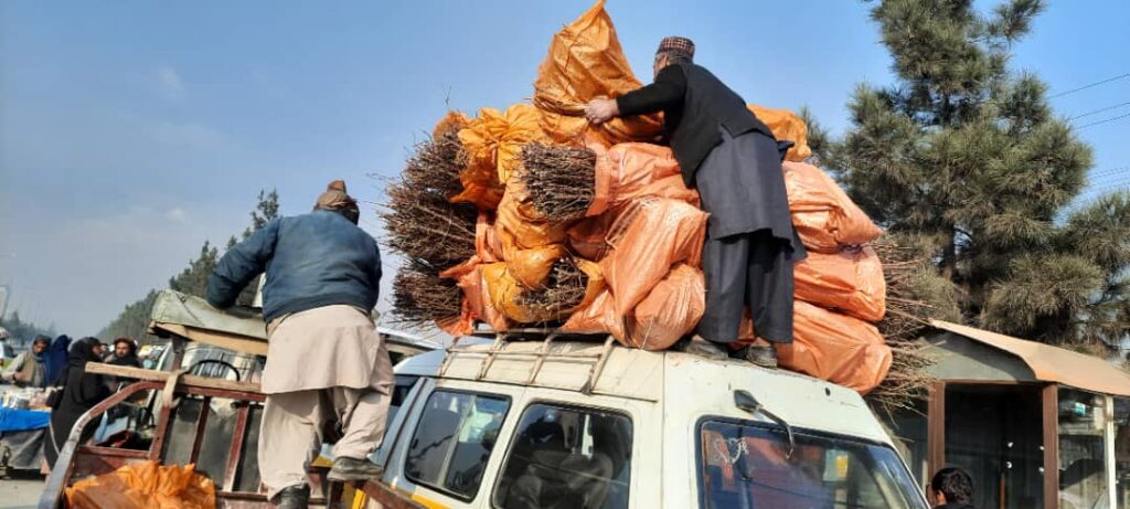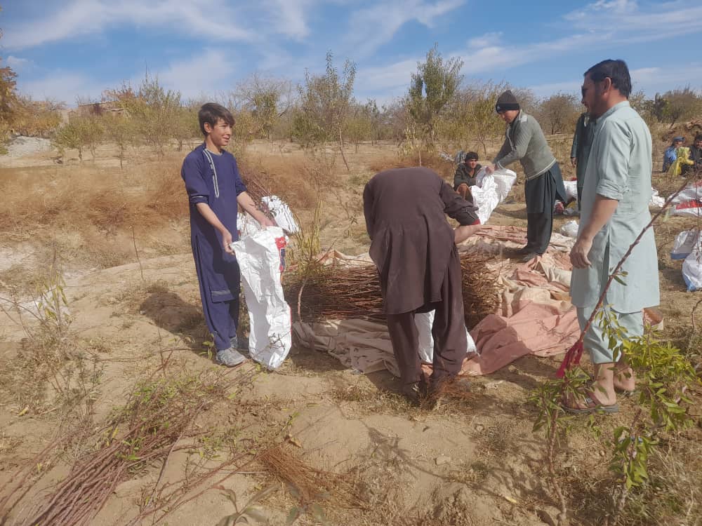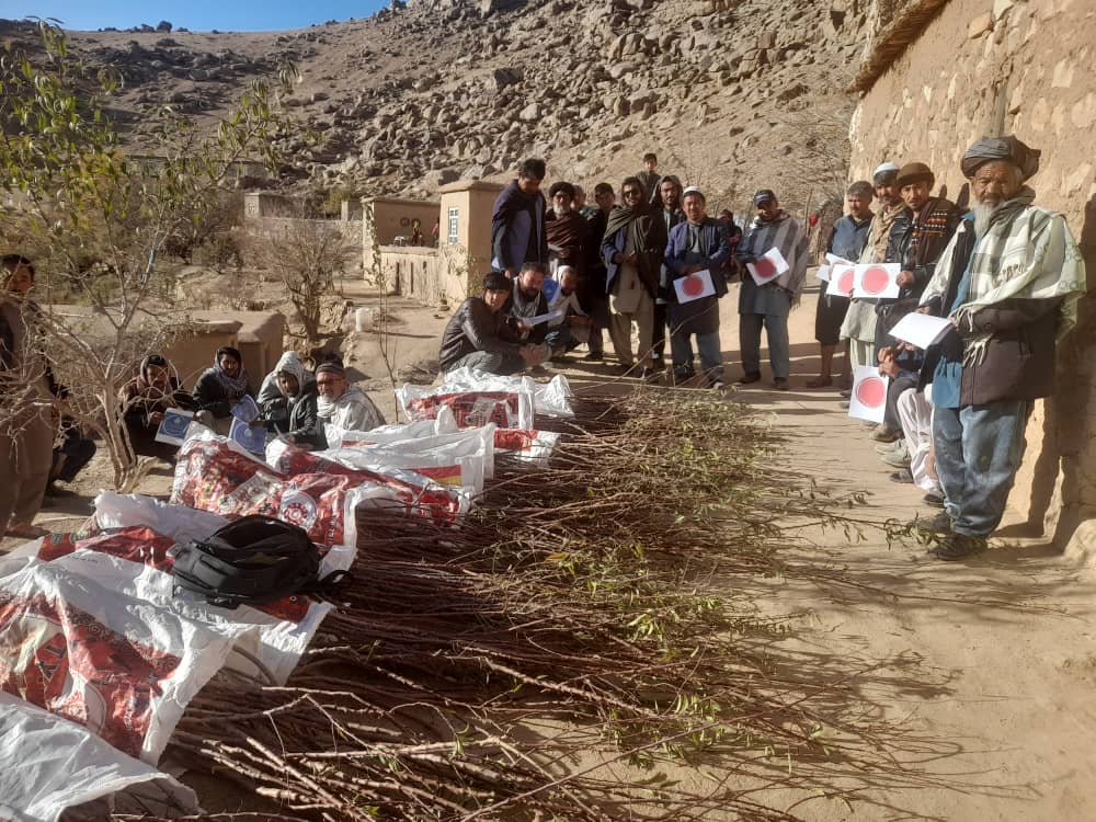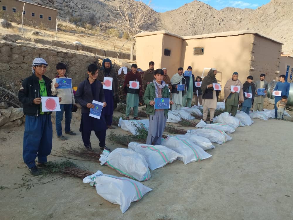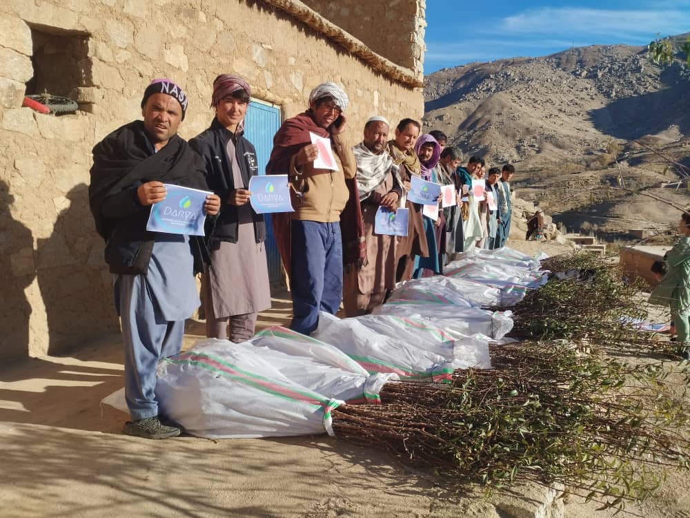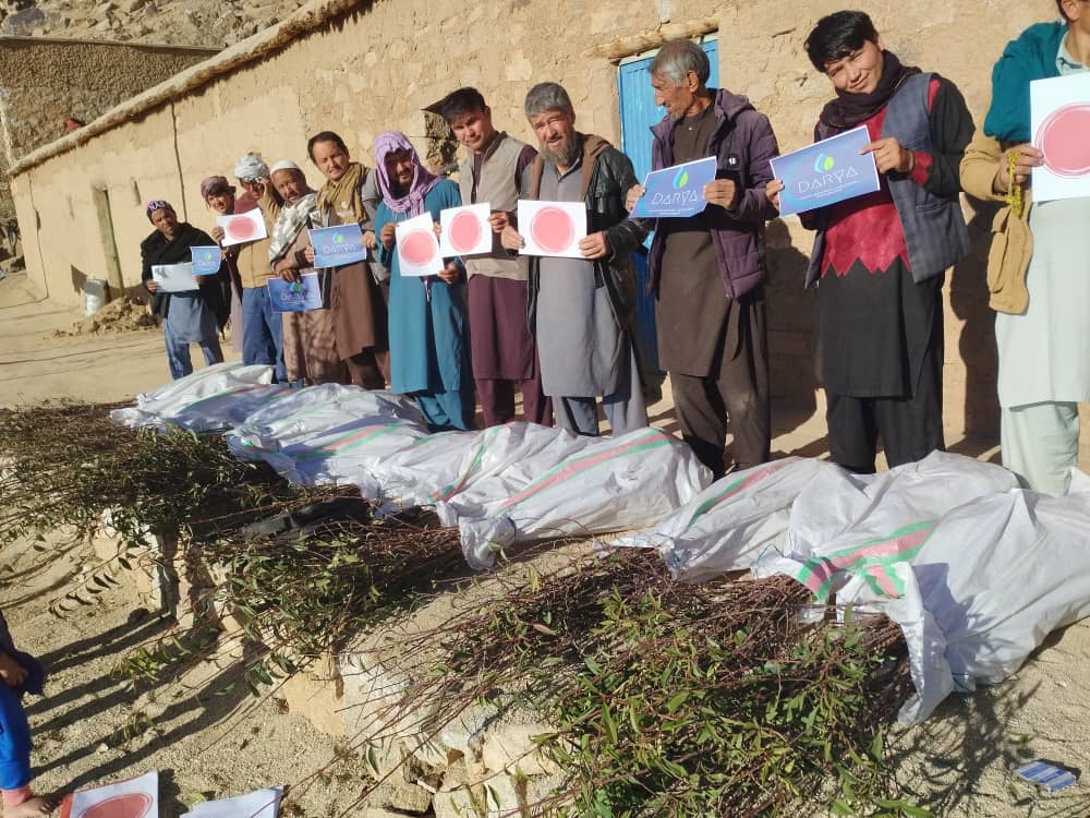In Sarawood, Mr. Khodabakhsh has a small tree growing business and he sells saplings. In November 2022, we bought 1800 saplings for 50 Afghani each. Then the saplings were distributed to 45 families who live in different villages in Miramor district of Daikundi. Each family received about 40 saplings.