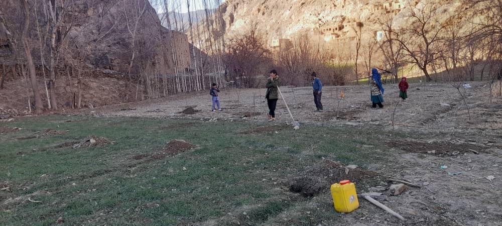 In Barkar, we planted another 700 trees. We bought the saplings from Kabul to get special kinds of almonds and transported them to Daikundi, Barkar, where the trees were distributed and planted.