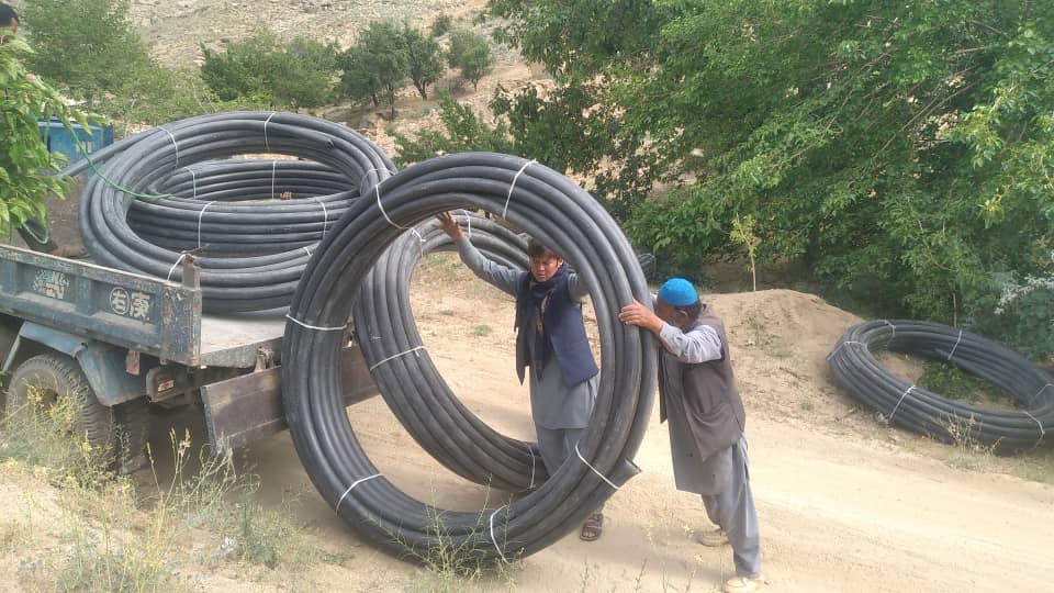 In rural Daikundi, many almond farmers are using rudimentary irrigation schemes like furrow irrigation to water almond trees. However, over long distances, a lot of water is lost with furrow irrigation. Today, climate change is leading to ever more frequent droughts in Afghanistan. Improving irrigation systems thus becomes a necessity for farmers. It enables them to build up resilience and is a key measure for them to adapt to climate change.